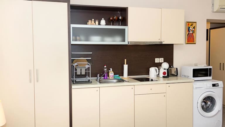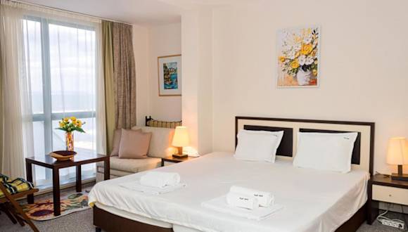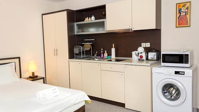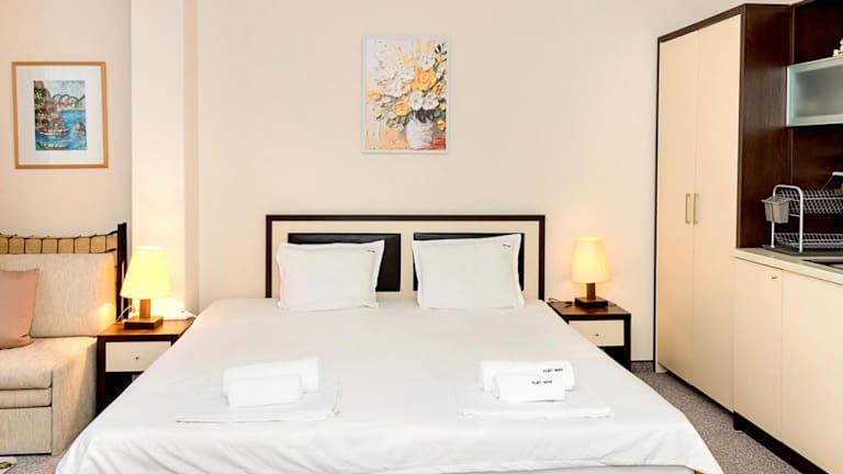 Die Ferienwohnung Sunny Studio in Hotel Berlin besticht durch einen eigenen Pool und verfügt über eine Terrasse mit Meerblick. Sie bietet Gästen die Bequemlichkeit eines saisonalen Aussenpools sowie kostenlosem Wifi in der gesamten Unterkunft.