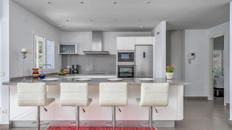 Die Unterkunft bietet eine voll ausgestattete Küche, die einen Kühlschrank, Geschirrspüler, Ofen und Wasserkocher umfasst.