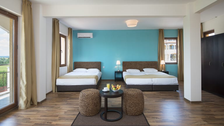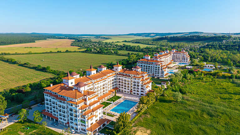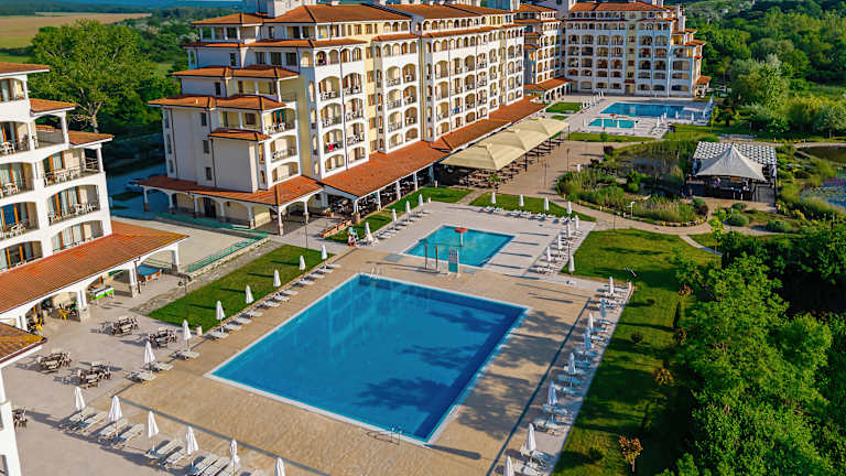 Das Sunrise All Suites Resort – Ihr Sommerrefugium zwischen Meer, Natur und Komfort Eingebettet in die grüne Ruhezone des nördlichen Obzor – nur wenige Schritte vom Strand entfernt und ideal gelegen zwischen den Flughäfen Varna (65 km) und Burgas (75 km) – erwartet Sie das Sunrise All Suites Resort mit einer einzigartigen Kombination aus Erholung, Unterhaltung und herzlicher Gastfreundschaft. Die weitläufige Anlage mit vier Gebäuden bietet stilvoll eingerichtete Doppelzimmer und Apartments, die speziell auf die Bedürfnisse von Familien und Freundesgruppen zugeschnitten sind. Die moderne Ausstattung und großzügigen Wohnflächen schaffen das perfekte Ambiente für entspannte Ferientage. Gäste genießen eine Vielfalt an Annehmlichkeiten: erfrischende Außenpools, ein idyllischer Bio-See, ein eigener Strandabschnitt mit Beachbar, sowie abwechslungsreiche kulinarische Erlebnisse in den hauseigenen Restaurants mit frisch zubereiteten, regional inspirierten Speisen. Ein engagiertes Animationsteam sorgt täglich für gute Laune – von Sport- und Spielaktivitäten über kreative Kinderprogramme im Miniclub bis hin zu stimmungsvollen Abendshows und Strandpartys unter freiem Himmel (wetterabhängig). Ob Entspannung oder Action, Naturgenuss oder Familienzeit – im Sunrise All Suites Resort erwartet Sie ein unvergesslicher Urlaubsmix mit echtem Wohlfühlfaktor.