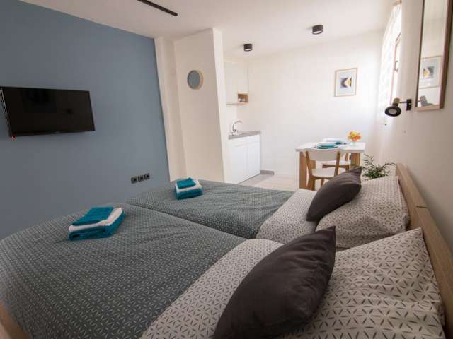Die Sunrise Apartments bieten eine Nichtraucherunterkunft mit einem heimeligen Garten und Grillmöglichkeiten. Die Unterkunft wird von einem privaten Gastgeber geleitet und legt Wert auf die Einhaltung von Hygiene- und Sicherheitsrichtlinien. Junggesellen- oder Junggesellinnenabschiede sind nicht erlaubt. Es sind keine Haustiere gestattet. Das Haus bietet verschiedene Annehmlichkeiten, darunter einen kostenpflichtigen Flughafentransfer und Waschservice.