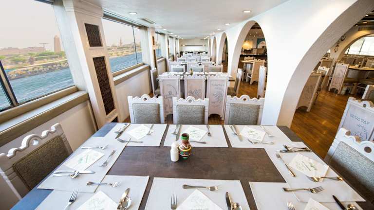 Das Restaurant des SUNRISE Mahrousa Cruise bietet verschiedene Speisemöglichkeiten. Zimmerservice steht den Gästen zur Verfügung, und es gibt die Möglichkeit, das Frühstück im Zimmer zu geniessen. Eine Bar lädt zum Verweilen ein.