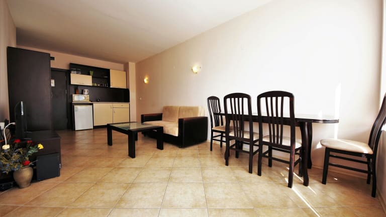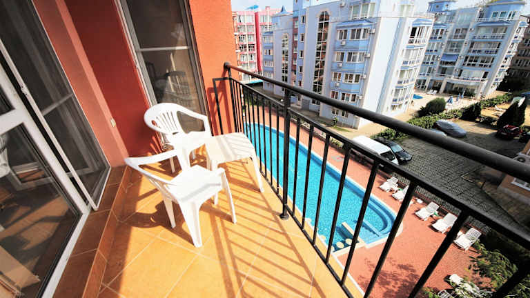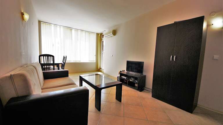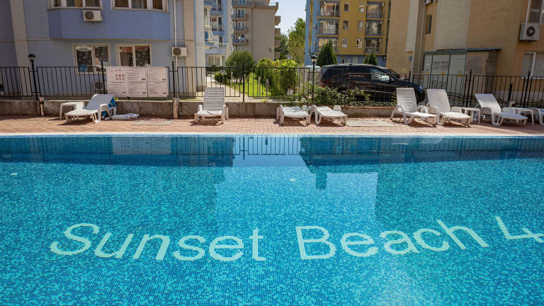 Das Sunset Beach 4 Apartment in Sonnenstrand ist eine ideale Unterkunft für einen entspannten Aufenthalt in Strandnähe. Mit kostenfreiem WLAN, einem saisonalen Außenpool und Klimaanlage bietet das Apartment alle Annehmlichkeiten für einen komfortablen Urlaub. Das Apartment verfügt über ein Schlafzimmer, ein Bad, eine voll ausgestattete Küche und einen Balkon mit Poolblick. Entspannen Sie auf der Sonnenterrasse oder erkunden Sie die nahegelegenen Sehenswürdigkeiten wie den Sonnenstrand und den Action AquaPark.
