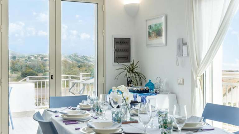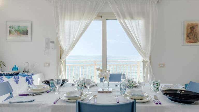 Sunset Dimora bietet Übernachtungsmöglichkeiten mit Meerblick, Grillmöglichkeiten und einem Balkon. Die Wohnung ist klimatisiert und verfügt über eine Terrasse. Handtücher und Bettwäsche werden bereitgestellt und die Unterkunft bietet eine Nichtraucherumgebung sowie eine Videoüberwachung der Außenbereiche.