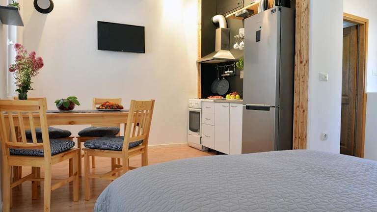 Die Unterkunft verfügt über ein Schlafzimmer, ein Bad, eine voll ausgestattete Küche und einen Essbereich, sowie einen Flachbild-TV. Bettwäsche, Handtücher und Wäsche werden nach den Richtlinien der örtlichen Behörden gewaschen.