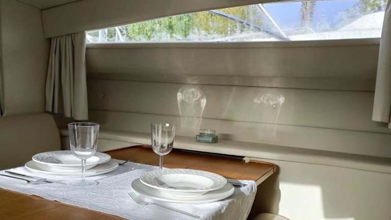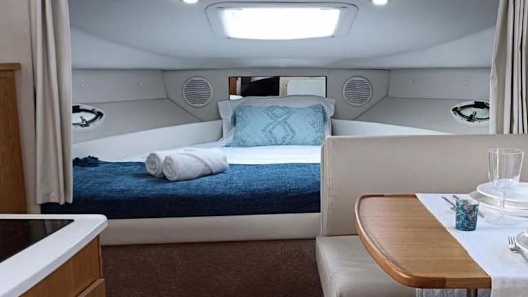 Sunset River bietet Übernachtungsmöglichkeiten direkt am Strand in einem Boot mit Garten und eigenem Strandbereich. Die Atmosphäre ist entspannt und heimelig.