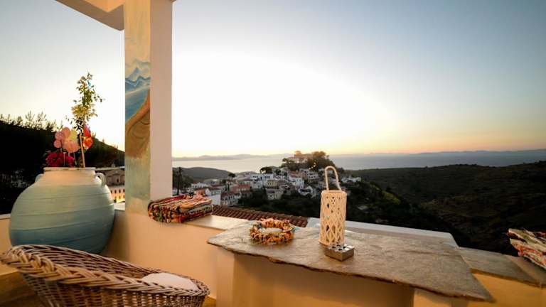 Die Sunset Suite Elena befindet sich in Ioulis und bietet einen wunderschönen Blick auf die Stadt, das Meer sowie die Berge. Die Nähe zur Natur und die ruhige Umgebung machen die Unterkunft zu einem idealen Ort für erholsame Ferien.