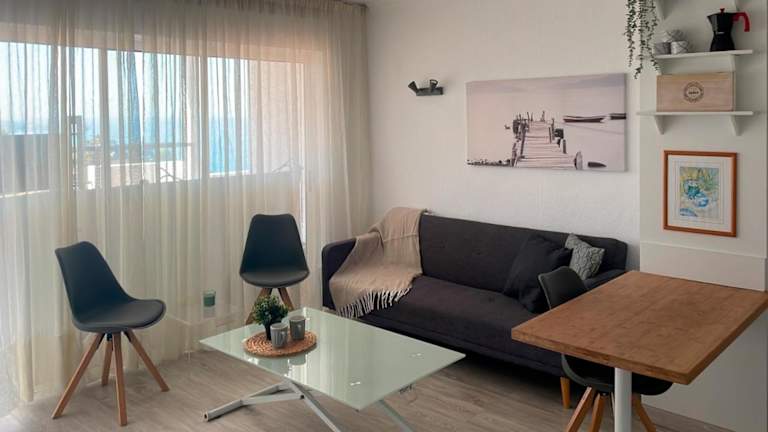 Die Ferienwohnung Sunset view in La Romantica, 3 bietet Übernachtungsmöglichkeiten mit einem einladenden Balkon und einem herrlichen Bergblick. Die Unterkunft ist hell und freundlich gestaltet und verfügt über eine Terrasse mit Meerblick.