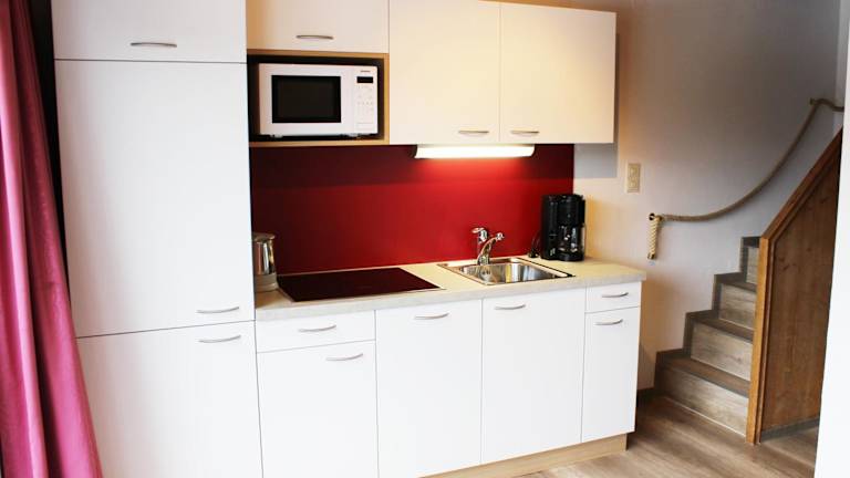 Die Appartements sind mit einem Kühlschrank, einem Geschirrspüler, einer Mikrowelle, einer Kaffeemaschine und einem Wasserkocher ausgestattet.