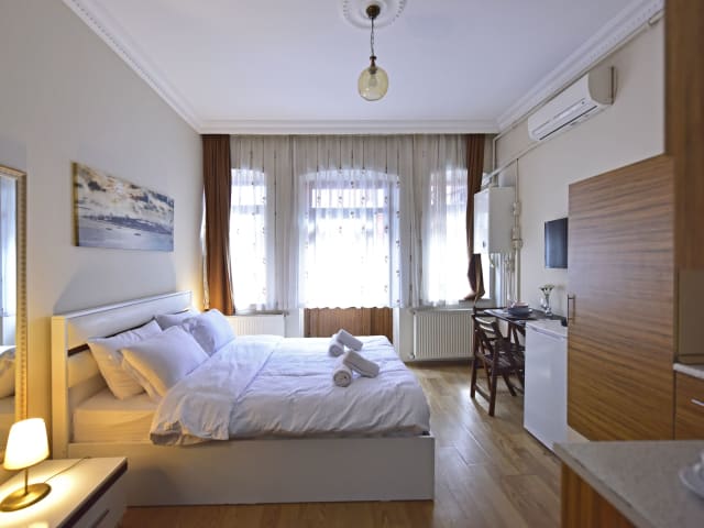 Die Unterkunft Sunshine Taksim Suite befindet sich im Zentrum von Istanbul, nur 500 Meter von der bekannten İstiklal Caddesi sowie 600 Meter vom Taksim-Platz entfernt. In der Nähe befinden sich auch interessante Orte wie der Galataturm, das Kongresszentrum Istanbul und der Uhrturm von Dolmabahçe.