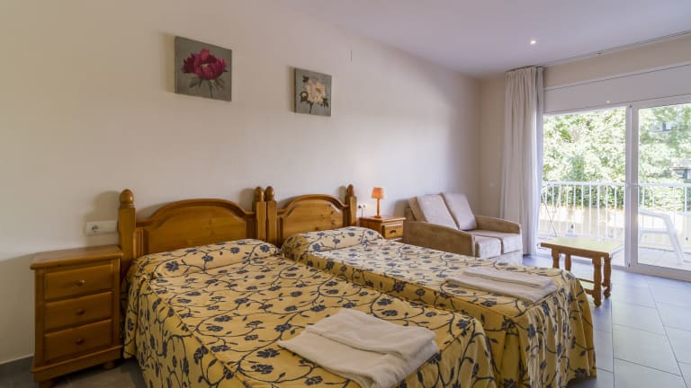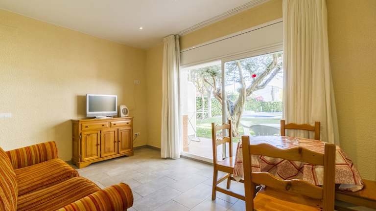 In den Zimmern der Ferienwohnungen sind eine Küche und ein Badezimmer vorhanden. Jedes Apartment bietet einen Balkon oder eine Terrasse, von welchen Gäste den Gartenblick geniessen können. Die Zimmer sind mit einem Doppelbett und einem Sofabett ausgestattet. Zustellbetten können auf Anfrage hinzugefügt werden. Die Kochnische ist mit Kühlschrank, Herd, Mikrowelle, Tee-/Kaffeemaschine und Backofen für Selbstversorger eingerichtet. Ausserdem bieten die Zimmer einen Fernseher, ein Telefon und gratis WiFi. Die Badezimmer sind mit einer Dusche, Badewanne und Bidet ausgestattet.