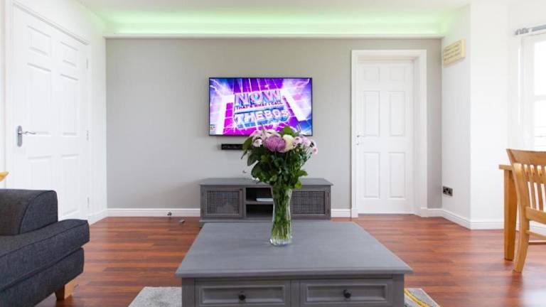 Die Ferienwohnung besteht aus 2 Schlafzimmern und einem Wohnzimmer sowie einer voll ausgestatteten Küche mit Kühlschrank und Kaffeemaschine. Es gibt zudem 2 Badezimmer mit Dusche und kostenlosen Pflegeprodukten. Handtücher und Bettwäsche werden bereitgestellt. Die Ausstattung umfasst auch Internetanschluss und Heizung.