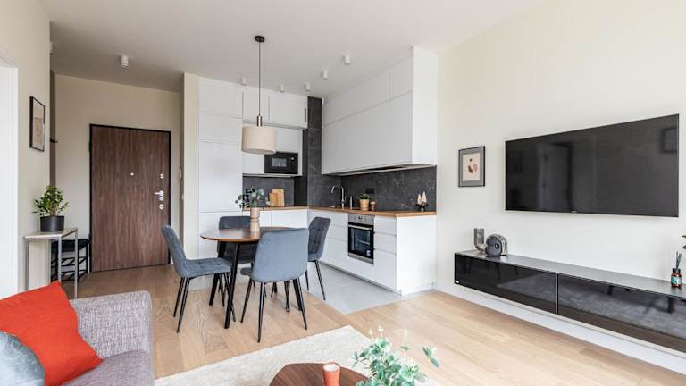 Der SuperApart Stanisława Augusta apt 42 - Park Skaryszewski bietet eine komfortable Ferienwohnung mit Terrasse und Balkon, ideal für einen erholsamen Aufenthalt. Zur Bequemlichkeit der Gäste stehen ein Privatparkplatz sowie kostenloses Wifi zur Verfügung.