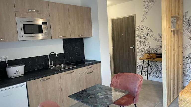 Das Superbe appartement neuf avec parking sur place ist ein neu eingerichtetes Appartement mit Balkon und Terrasse. Es bietet eine angenehme Bequemlichkeit mit einem kostenlosen Privatparkplatz vor Ort. Die Unterkunft legt Wert auf eine ruhige Atmosphäre, da Feierlichkeiten wie Junggesellenabschiede nicht gestattet sind. Das Mindestalter für den Check-in beträgt 18 Jahre.