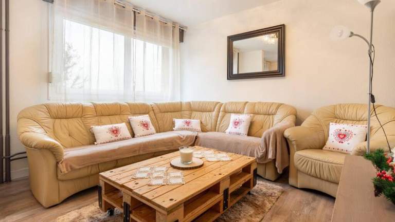 Superbe appartement spacieux avec parking gratuit ist eine grosszügige Ferienwohnung, die durch ihren heimeligen Gartenblick besticht. Sie verfügt über einen kostenlosen Privatparkplatz, was eine angenehme Bequemlichkeit darstellt. Die Unterkunft bietet zudem einen Kinderspielplatz und ein Kasino vor Ort.