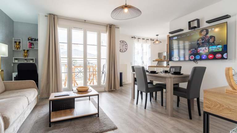 Die Unterkunft Superbe appartement très confortable bietet eine moderne und helle Ferienwohnung, die durch ihren geräumigen Balkon, kostenlosen Privatparkplatz sowie kostenfreies Wifi überzeugt.