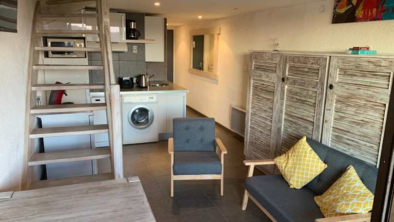 Superbe Duplex 35m2 vue mer avec piscine bietet einechöne Unterkunft mit Poolblick, Garten und einer Bar. Die Unterkunft verfügt über einen Aussenpool und gratis Wifi. Check-in ist ab 17:00 Uhr möglich, Check-out bis 10:30 Uhr.