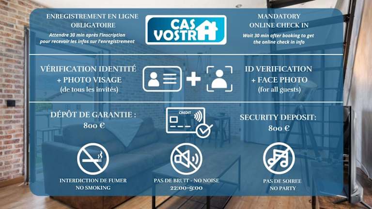 Das Superbe Loft industriel - Casa Vostra verfügt über eine Terrasse und einen Balkon. Es handelt sich um eine Nichtraucherunterkunft, in der sowohl Haustiere erlaubt sind als auch besondere Sicherheitsmassnahmen zur Hygiene beachtet werden.