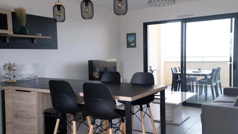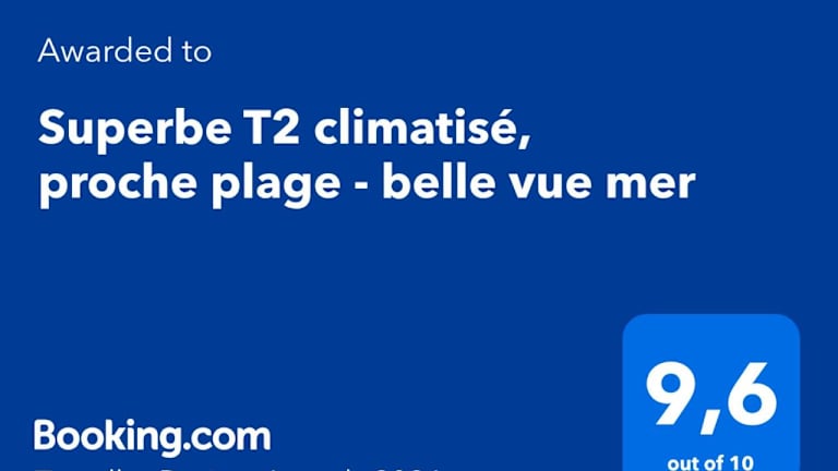 Superbe T2 climatisé, proche plage - belle vue mer ist eine klimatisierte Ferienwohnung mit Grillmöglichkeiten und Blick auf das Meer. Sie liegt direkt am Strand und bietet Zugang zu einer Terrasse und einem kostenlosen Privatparkplatz. Die Unterkunft wird von einem privaten Gastgeber verwaltet.