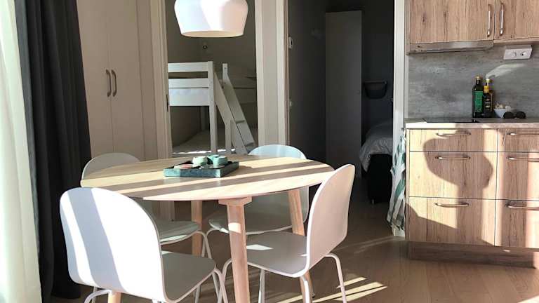 Die Unterkunft umfasst 2 Schlafzimmer, ein Wohnzimmer sowie eine voll ausgestattete Küche mit Kühlschrank und Kaffeemaschine. Ein Badezimmer mit Dusche ist vorhanden. Ein Flachbild-TV mit Kabelkanälen sorgt für Unterhaltung. Die Beherbergung ist klimatisiert und bietet Zugang zu Gartenmöbeln. Es stehen kostenfreies Internet und WLAN zur Verfügung.