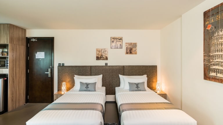 Die Unterkunft SureStay Plus by Best Western T Pattaya ist eine moderne Hotelanlage, die zahlreiche Annehmlichkeiten bietet. Zu den Einrichtungen gehören eine 24-Stunden-Rezeption, ein Business-Center sowie ein Buffetrestaurant. Ein kostenfreier Parkplatz und eine Garage stehen ebenfalls zur Verfügung. Die Gäste haben Zugang zu einem Garten und einem TV-Raum, und es gibt einen Shuttleservice. Das Hotel ist rollstuhlgerecht ausgestattet und bietet behindertengerechte Annehmlichkeiten.