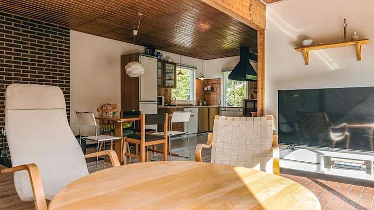 Das Ferienhaus ist mit einem Wohnzimmer ausgestattet, das einen TV enthält. Zudem gibt es eine voll ausgestattete Küche mit einem Kühlschrank und einem Geschirrspüler. Das Badezimmer bietet eine Badewanne oder Dusche.