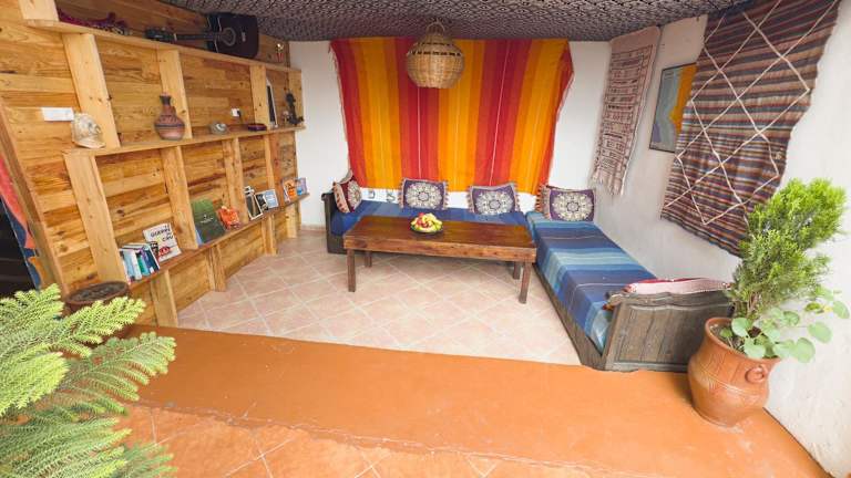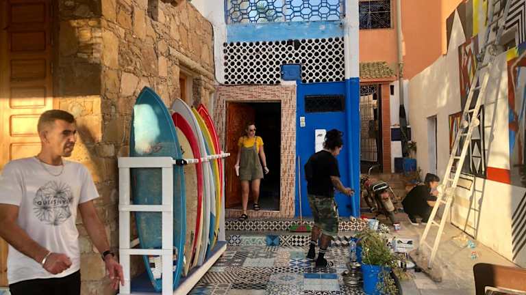 Das Surf and Skate Hostel taghazout in Taghazout bietet seinen Gästen eine entspannte und gesellige Atmosphäre. Mit kostenfreien Fahrrädern, einer Gemeinschaftslounge, einer Terrasse und einer Bar sorgt das Hostel für einen angenehmen Aufenthalt. Die Unterkunft verfügt über eine Gemeinschaftsküche, Zimmerservice und einen Geldwechsel. Die Zimmer sind einfach, aber gemütlich eingerichtet und bieten einen Balkon mit Blick auf die Stadt. Jeden Morgen wird ein leckeres Frühstück serviert und im hauseigenen Restaurant können Sie afrikanische, amerikanische und argentinische Küche genießen. Das Hostel bietet auch spezielle Ernährungsoptionen auf Anfrage. In der Umgebung können Sie Aktivitäten wie Radfahren und den Strand erkunden. Der Flughafen Agadir-Al Massira ist nur 40 km entfernt und ein kostenpflichtiger Flughafentransfer wird angeboten.