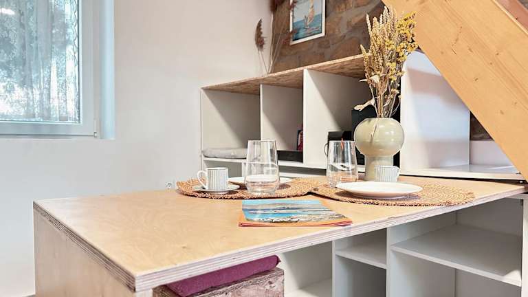 Das Ferienhaus verfügt über ein Schlafzimmer, ein Wohnzimmer, eine voll ausgestattete Küche mit Kühlschrank und Kaffeemaschine sowie ein Badezimmer mit Dusche und kostenlosen Pflegeprodukten. Handtücher und Bettwäsche werden bereitgestellt.