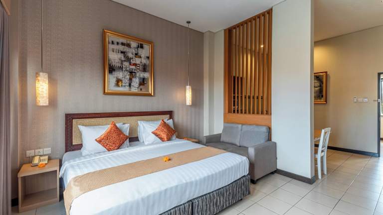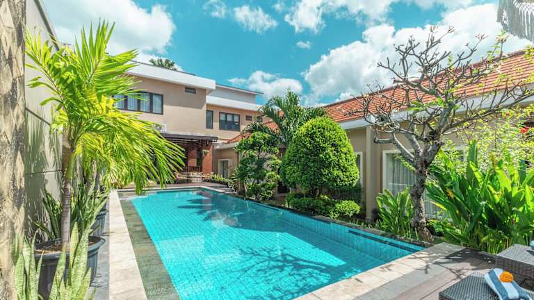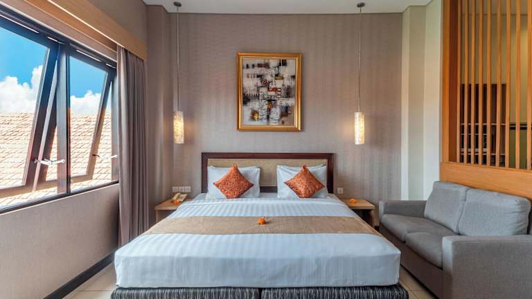 Das Hotel Svarna Suite Seminyak liegt im Herzen von Seminyak, nur 1,3 km vom Double Six Beach entfernt. In der näheren Umgebung befinden sich der Strand von Legian (1,6 km) und der Strand Pantai Kuta (2 km). Auch das Einkaufszentrum Kuta Square ist mit 4,7 km gut erreichbar und bietet zahlreiche Einkaufsmöglichkeiten. Der Flughafen Ngurah Rai ist 7 km entfernt.
