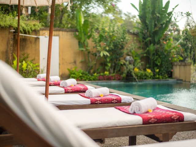Das Swahita Ubud befindet sich nur 1,4 km vom Markt von Ubud entfernt. In der Nähe finden Sie auch den Palast von Ubud und den Tempel Saraswati. Die Umgebung bietet sich perfekt zum Radfahren an und Sie können Fahrräder in der Unterkunft ausleihen. Der internationale Flughafen Ngurah Rai liegt etwa 38 km entfernt und das Hotel bietet einen kostenpflichtigen Flughafentransfer an.