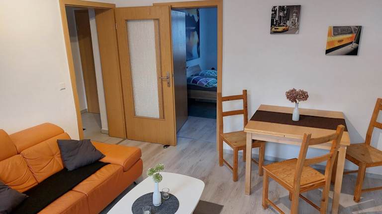 Die Ferienwohnung hat 1 Schlafzimmer und umfasst ein Wohnzimmer mit einem Flachbild-TV, eine voll ausgestattete Küche mit Kühlschrank und Ofen sowie ein Badezimmer mit Dusche. Gegen Aufpreis werden Handtücher und Bettwäsche bereitgestellt.