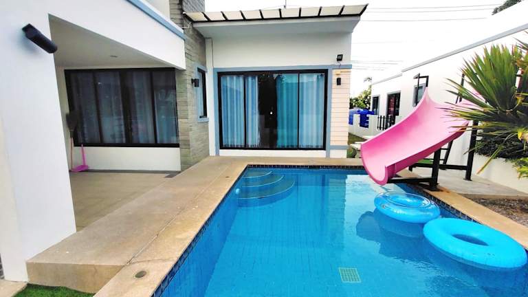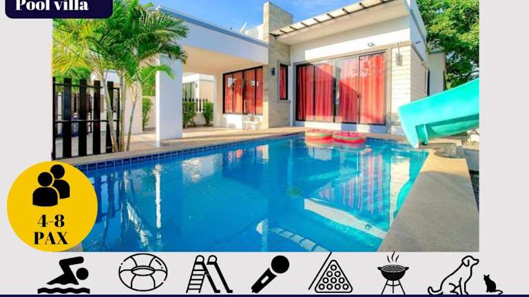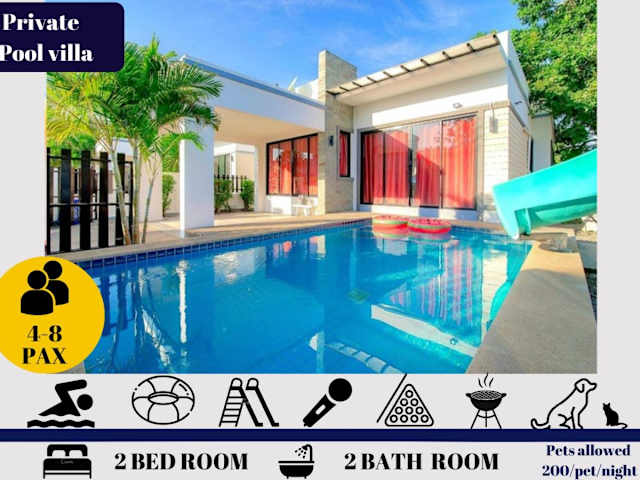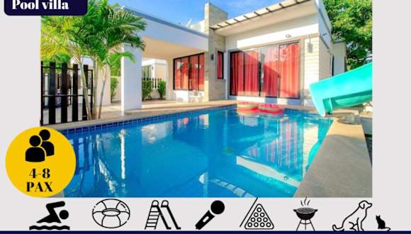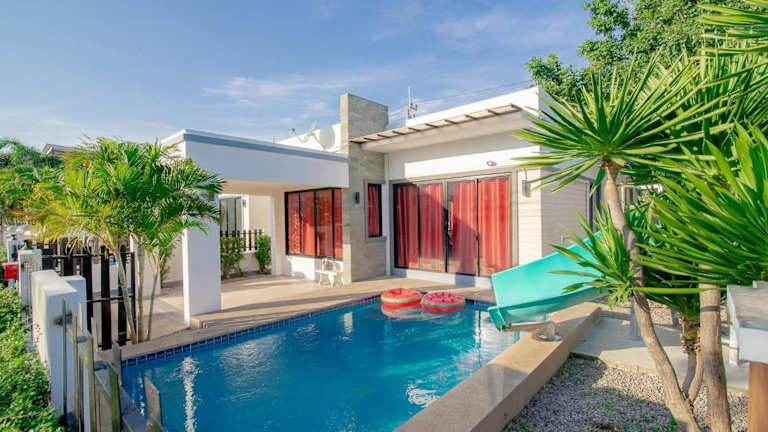 Die Sweet Party Hua-Hin Private Poolvilla zeichnet sich durch einen ganzjährig geöffneten Aussenpool und kostenfreies Wifi aus. Zudem wird eine kostenlose Parkiermöglichkeit für Gäste angeboten, die mit dem Auto anreisen. Jedes Zimmer bietet einen Balkon mit Blick in den Garten.