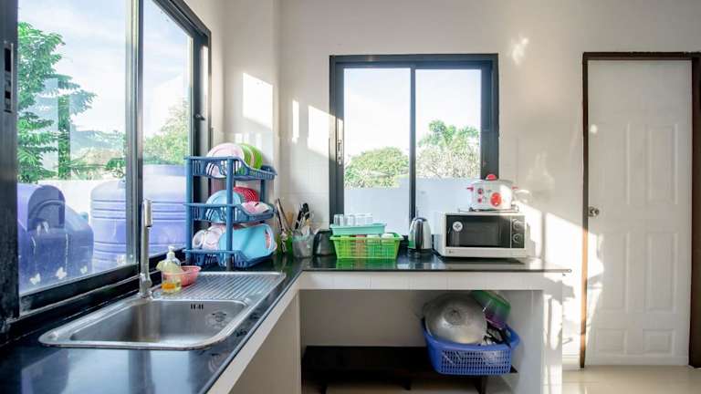 Jede Wohneinheit enthält eine Küche mit Kühlschrank, Mikrowelle und Herdplatte, was eine Selbstversorgung ermöglicht. Grillmöglichkeiten stehen ebenfalls zur Verfügung.