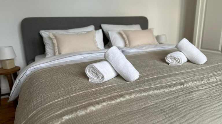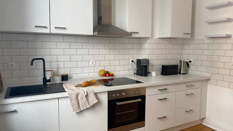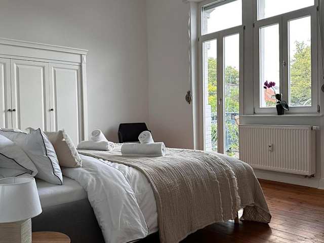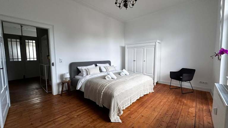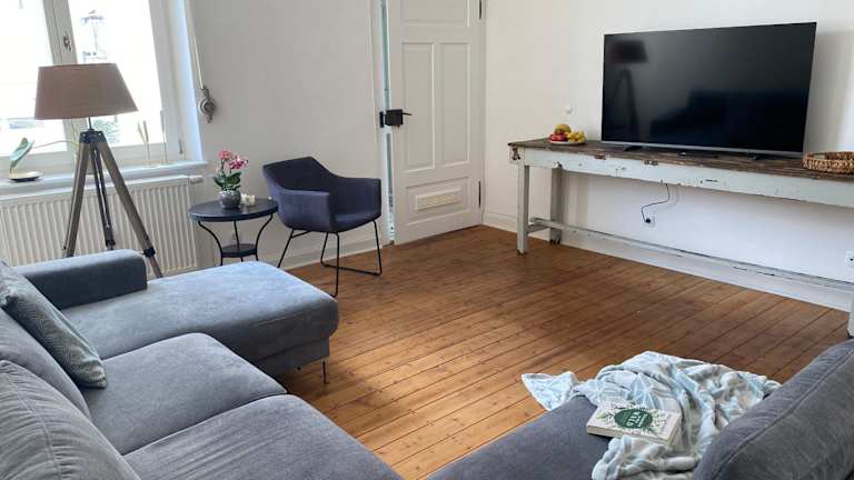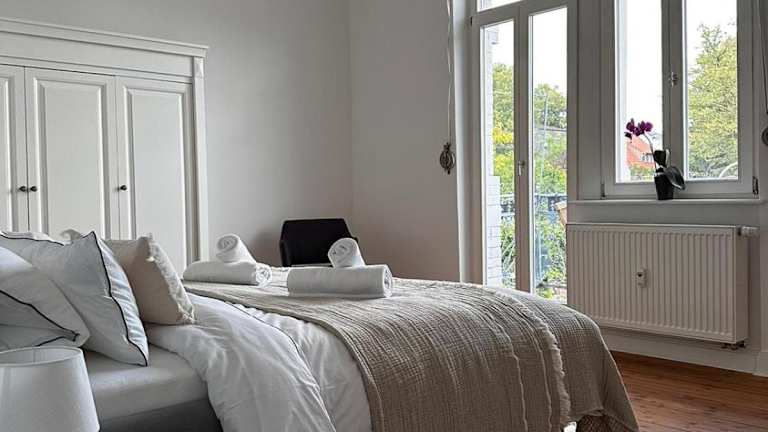 Die Ferienwohnung besteht aus 2 Schlafzimmern und einem Wohnzimmer. Sie verfügt über eine voll ausgestattete Küche mit einem Kühlschrank und einer Kaffeemaschine. Ein Badezimmer mit Dusche und Haartrockner sowie Handtücher und Bettwäsche sind ebenfalls vorhanden.