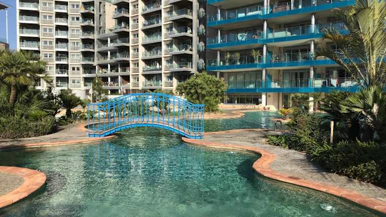 Das Swimming pools Apartment in Ocean Village - 2 bed 2 bath Rock view bietet eine vielseitige und einladende Ausstattung, darunter einen Aussenpool, eine Terrasse sowie ein Restaurant. Die Ferienwohnung bietet eine angenehme Atmosphäre und verfügt über Klimaanlage sowie kostenfreies Wifi.