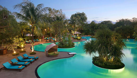 Das Hotel befindet sich in der Region Nusa Dua, etwa 2 km vom weissen Sandstrand Geger und ca. 3 km vom Strand Nusa Dua entfernt. Der internationale Flughafen Denpasar liegt in ungefähr 15 km Entfernung.