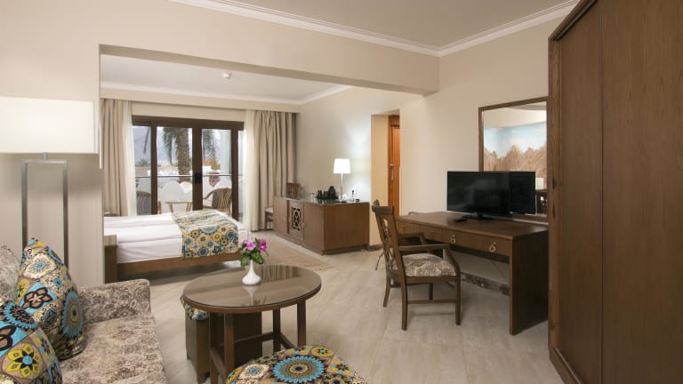 Eingebettet zwischen Wüste und majestätischen Bergen des Sinai liegt das charmante Swiss Inn Resort, am Ufer des Roten Meeres-am Golf von Aqaba. Das Swiss Inn Resort befindet sich 90 km nördlich von Sharm El Sheikh und 130 km von der Grenze zu Taba-Eilat. Unser schönes Hotel liegt an einem breiten Strandabschnitt mit feinem Sand, nur 3 km vom Dahab Zentrum entfernt. Dahab ist nicht nur bekannt als Paradies für Surfer und Taucher, sondern auch als Ausgangspunkt für unvergessliche Safaris in die zeitlose Umgebung der Sinai-Halbinsel.