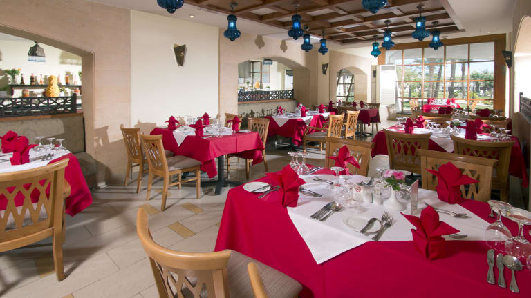 Restaurants und Bars: Haupt Restaurant “Al Khaima” Innen Sitzplätze: 120 Außen Sitzplätze: 180 auf der Terrasse neben dem Pool Buffets:Täglich verschiedene, internationale Gerichte aus bekannten internationalen Länder. Frühstück 07:00 – 10:00 Uhr Mittag 12:00 – 14:00 Uhr Abendessen 18:30 – 21:00 Uhr Restaurant / Lounge am Pool “ Zeytoun” Sitzplätze: 60 A’ la carte: von 12:00 – 17:00Uhr Spezielle Themenabende und Internationale A‘ la carte Gerichte an bestimmten Abenden Sports Bar “Locanda” Sitzplätze: 30 Coffee Shop (Lobby) Sitzplätze : 12 A’ la carte: Getränke, Tee, Kaffee Beach Bar Sitzplätze: 70 Geöffnet von 10:00 Uhr – Mitternacht Bar: Getränke, Shisha, Snacks, Eis & mehr …