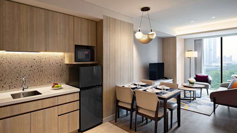 Das Swissôtel Living Jakarta Mega Kuningan bietet eine Unterkunft mit einem rund um die Uhr besetzten Empfang. Zur Ausstattung gehören ein Aussenpool, ein Fitnessraum sowie eine Sauna. Es ist ein Nichtraucherhotel, das eine Vielzahl von Annehmlichkeiten für seine Gäste anbietet.