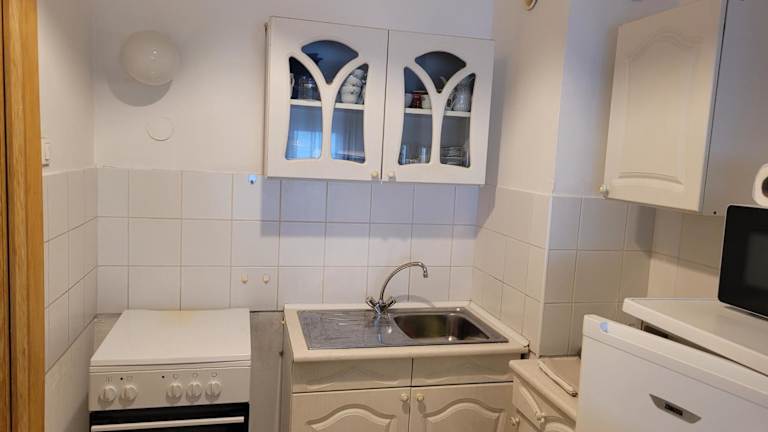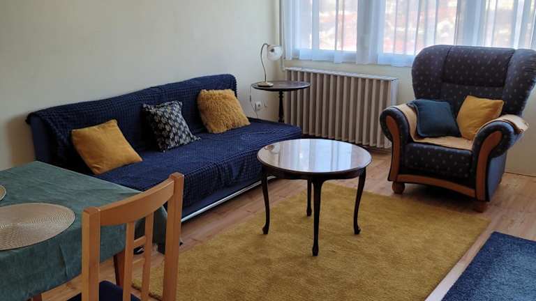 Die Ferienwohnung umfasst ein Schlafzimmer, ein Wohnzimmer sowie eine voll ausgestattete Küche mit Kühlschrank und Kaffeemaschine. Das Badezimmer ist mit einer Dusche und einem Haartrockner ausgestattet. Handtücher und Bettwäsche werden zur Verfügung gestellt.