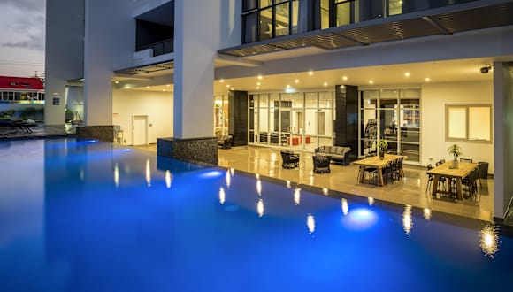 Synergy Broadbeach liegt nur 5 Gehminuten von den goldenen Sandstränden und den rollenden Wellen von Broadbeach entfernt. Zahlreiche Cafés, Restaurants und Bars sind ebenfalls in der Nähe. Das Gold Coast Convention and Exhibition Centre befindet sich direkt gegenüber, während der Gold Coast Flughafen eine 30-minütige Autofahrt entfernt ist. Es gibt in der Umgebung Baustellen, die jedoch sonntags und an Feiertagen ruhen.
