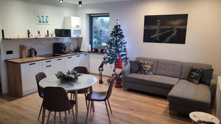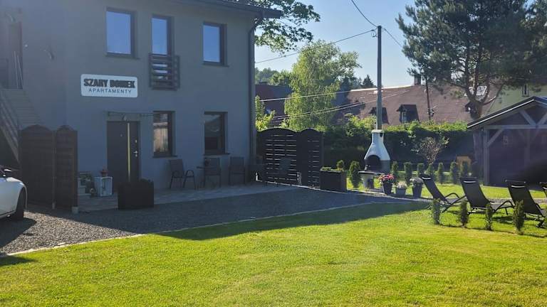 Die Unterkunft Szary Domek verfügt über kostenlose Parkiermöglichkeiten und kostenloses Wifi. Alle Wohneinheiten sind mit einer Terrasse ausgestattet, die einen schönen Blick auf den Garten bietet. Die Unterkunft wird von einem privaten Gastgeber geführt. Haustiere sind nicht gestattet.