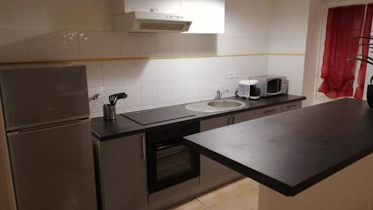 Die Ferienwohnung verfügt über ein Schlafzimmer, ein Wohnzimmer mit einem Flachbild-TV und eine voll ausgestattete Küche. Es sind keine Bettwäsche oder Handtücher bereitgestellt, die Gäste sollten diese selbst mitbringen.