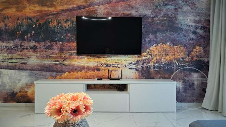 Die klimatisierte Ferienwohnung verfügt über ein Schlafzimmer, ein Wohnzimmer mit Kabel-Flachbild-TV und einen Essbereich. Die Küche ist mit einem Kühlschrank ausgestattet. Die Unterkunft stellt Handtücher und Bettwäsche zur Verfügung.