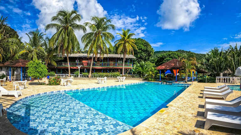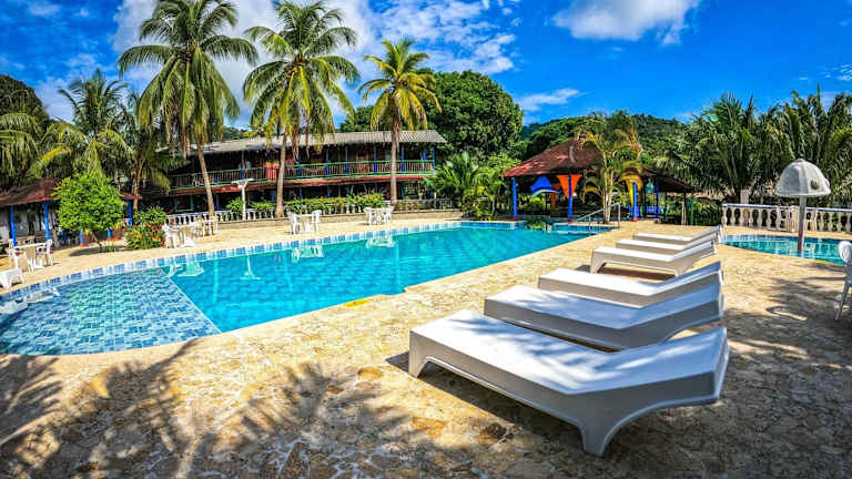 Die Tacarcuna Lodge in Capurganá ist der ideale Ort für einen entspannten Urlaub inmitten der Natur. Mit ihrer Nähe zum Karibischen Meer bietet die Lodge eine Vielzahl von Aktivitäten wie Tauchen, Schnorcheln und Bootsfahrten. Die freistehenden Zimmer im Cottagestil sind von üppigen Gärten umgeben und bieten eine gemütliche Atmosphäre. Entspannen Sie am Außenpool oder in der Hängematte auf Ihrer eigenen Terrasse. Das Restaurant und die Bar sorgen für Ihr leibliches Wohl. WLAN steht Ihnen kostenlos zur Verfügung.
