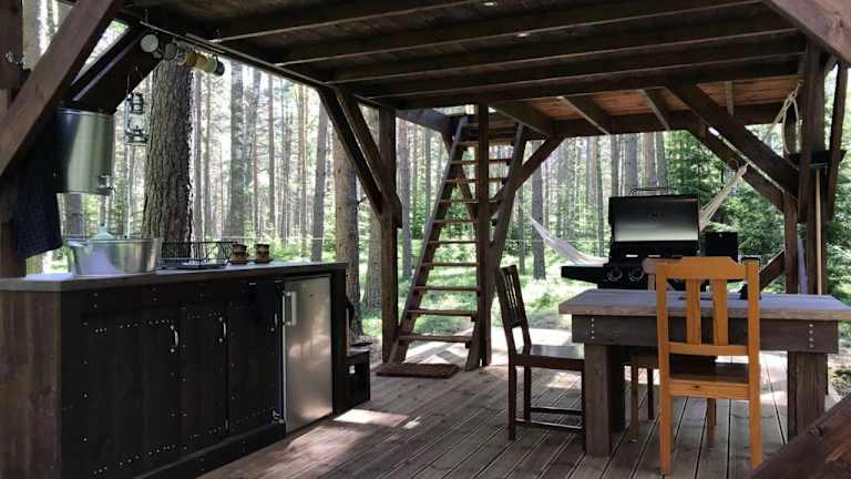 Das Tahkuna tree-house ist in Malvaste, einer malerischen Region in Dagö, gelegen. Die Umgebung bietet vielseitige Möglichkeiten für Windsurfen und Angeln.