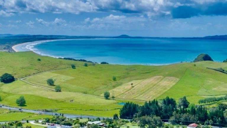 Kaitaia, gelegen in Doubtless Bay, umgeben von einer einladenden Gartenlandschaft und nahe dem Strand.