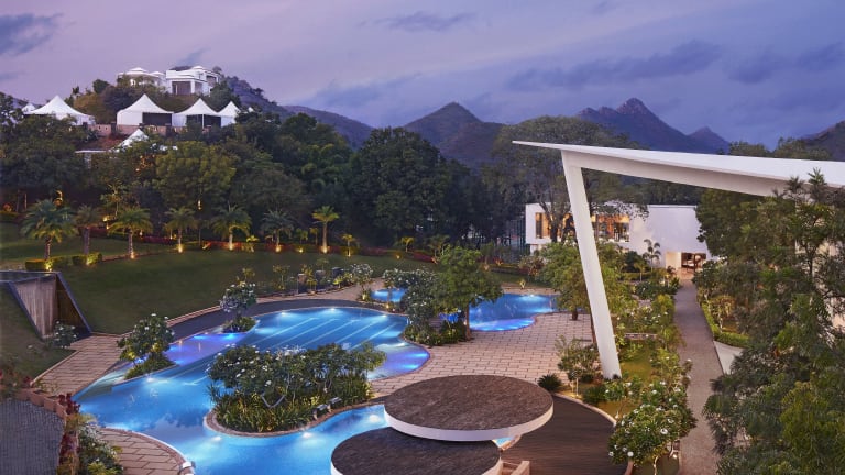 Das Taj Aravali Resort & Spa befindet sich in Udaipur, umgeben von der beeindruckenden Landschaft der Aravali-Berge. In der Nähe liegen kulturelle Sehenswürdigkeiten wie Bagore ki Haveli und der Jagdish-Tempel. Der Maharana Pratap Flughafen ist 33 km entfernt.