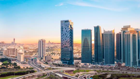 Das Hotel befindet sich in Dubai, gelegen an der Sheikh Zayed Road, etwa 5 km vom Strand entfernt und in zentraler Lage. Der Flughafen ist ca. 35 km entfernt, das Stadtzentrum etwa 20 km und der nächste Golfplatz bereits in 3 km Entfernung.