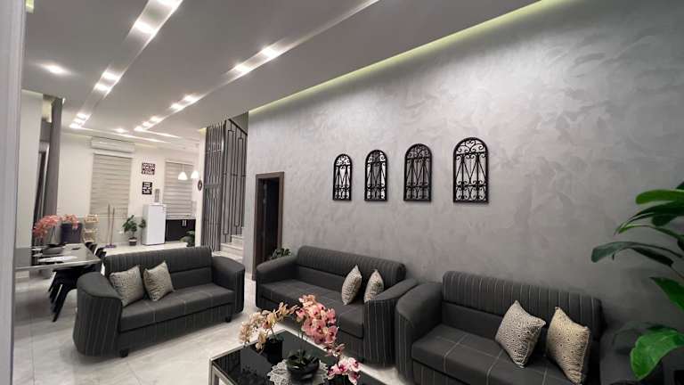 Die Villa umfasst 3 Schlafzimmer, 6 Badezimmer mit Bidet und Dusche, ein Wohnzimmer sowie eine Terrasse mit Stadtblick. Sie ist schallisoliert und bietet eine klimatisierte Ausstattung, inklusive Handtüchern und Bettwäsche, die auf Anfrage bereitgestellt werden kann.