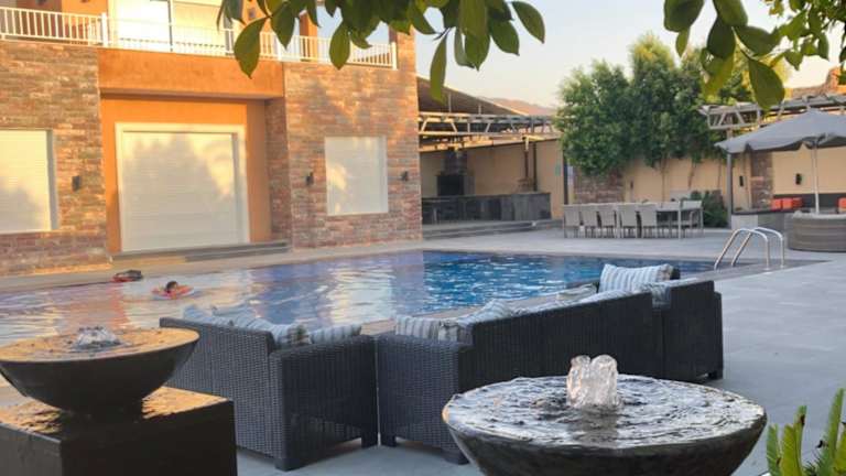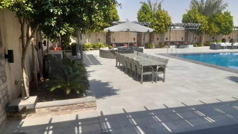 Die Villa bietet verschiedene Freizeitmöglichkeiten, darunter einen Aussenpool, einen Kinderspielplatz sowie Grillmöglichkeiten im Garten. Es sind zudem Sicherheitsmassnahmen wie Videoüberwachung und ein 24-Stunden-Sicherheitspersonal vorhanden.